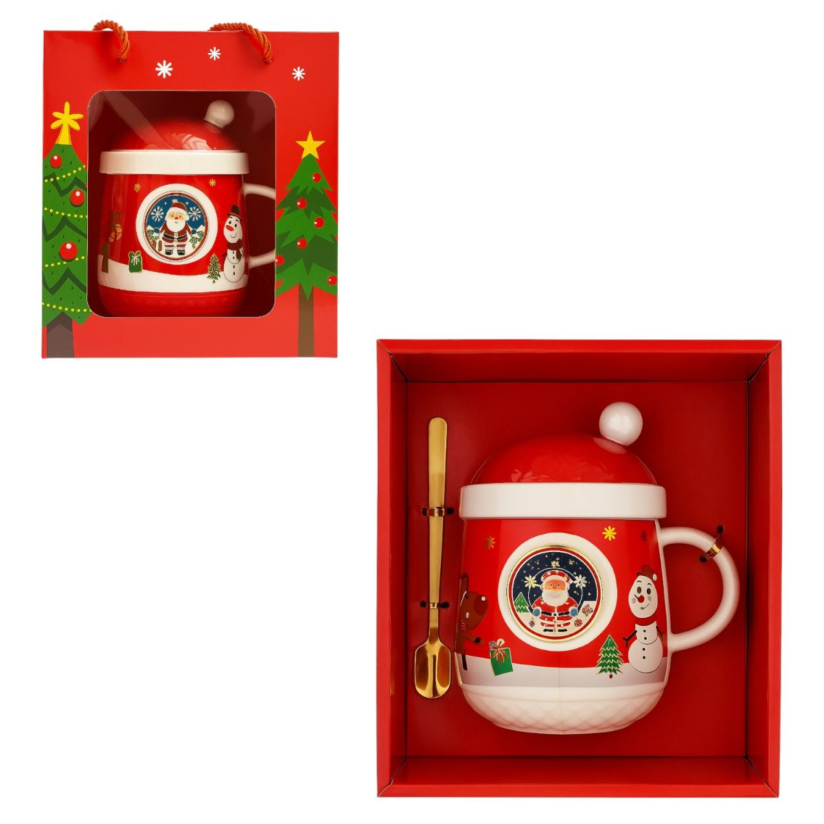 Cana de Crăciun din ceramică, cu capac și linguriță, dimensiune 13x10 cm, este un produs elegant și festiv, perfect pentru sezonul sărbătorilor de iarnă.