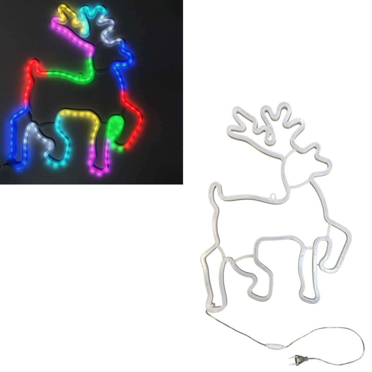 Adaugă farmec și culoare sărbătorilor de iarnă cu această decorațiune de Crăciun în formă de ren, o piesă luminoasă spectaculoasă, ideală pentru a completa orice decor festiv, fie acasă, fie în spații comerciale. Cu o dimensiune de 50x36 cm, acest ornament suspendat se remarcă prin designul său modern, elegant și prin lumina LED multicoloră care creează o atmosferă de poveste, perfectă pentru sezonul Crăciunului.