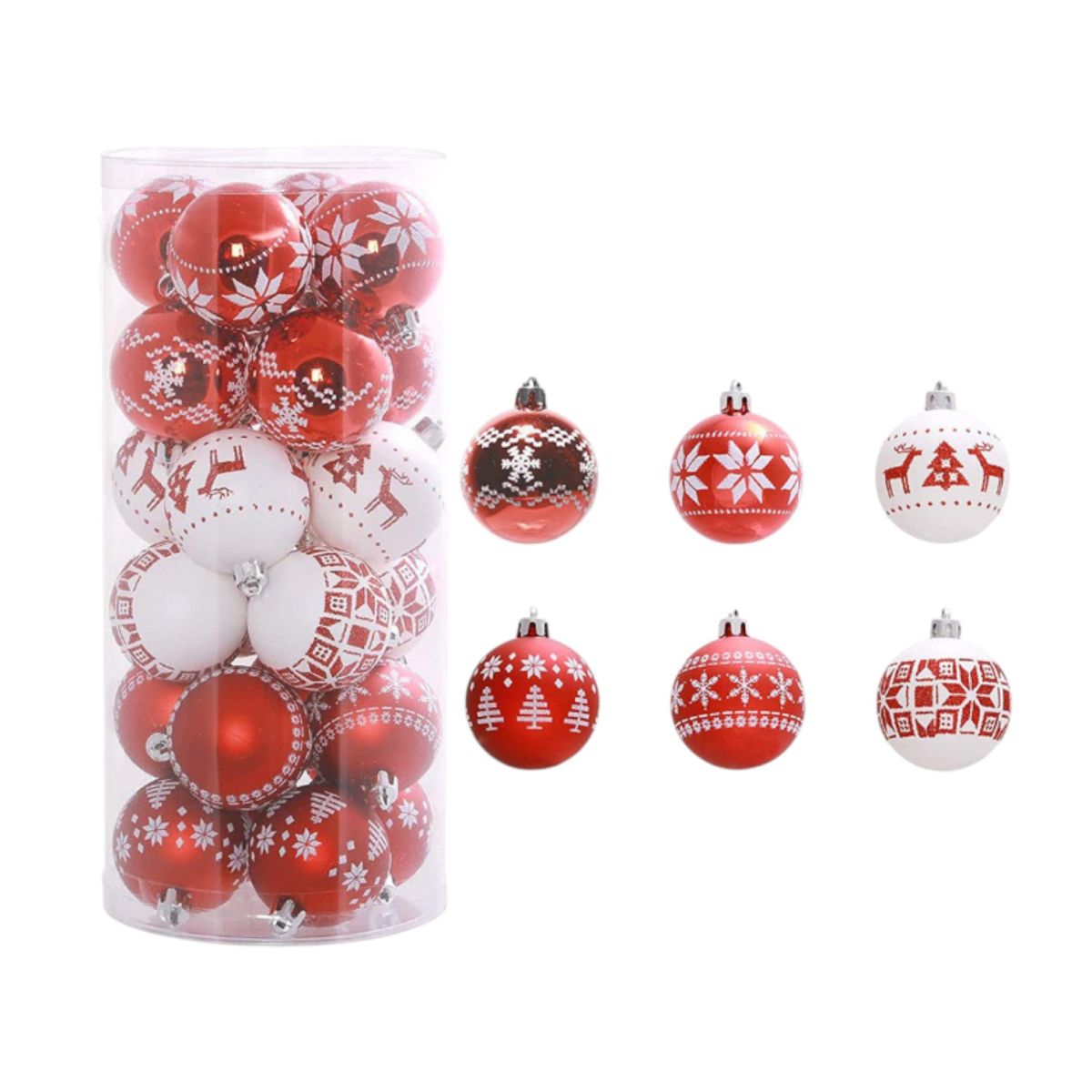 Globurile de Crăciun 30/set, din plastic de 6 cm, cu modele decorative de reni și fulgi de zăpadă, sunt alegerea ideală pentru cei care doresc să îmbine tradiția sărbătorilor cu eleganța modernă.